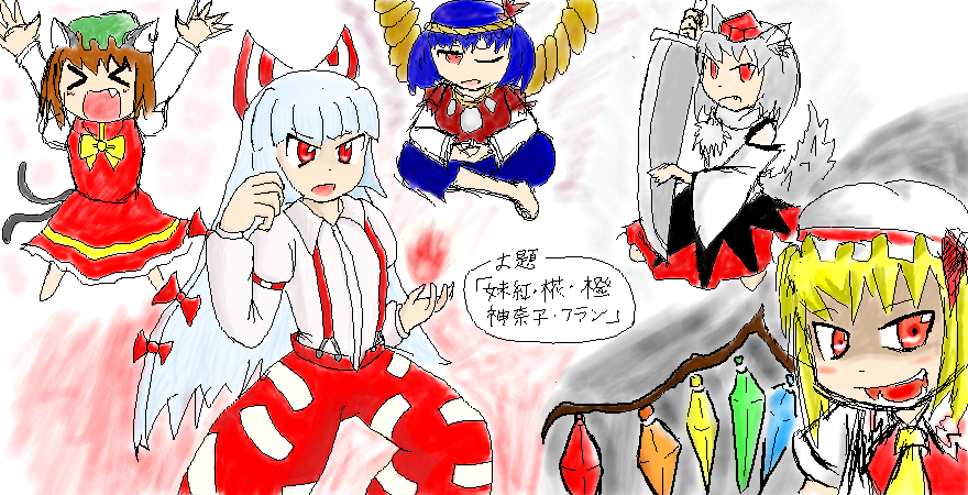 犬兄やんからのお題「俺の嫁5人(妹紅,椛,橙,神奈子,フラン)」